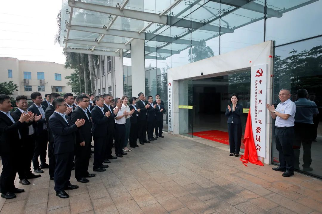 海口市高新区两新组织党委副书记傅爱萍宣读了《中共海口国家高新区非公有制经济组织和社会组织委员会关于同意成立中国共产党海南皇冠体育药业集团股份有限公司委员会的批复》。